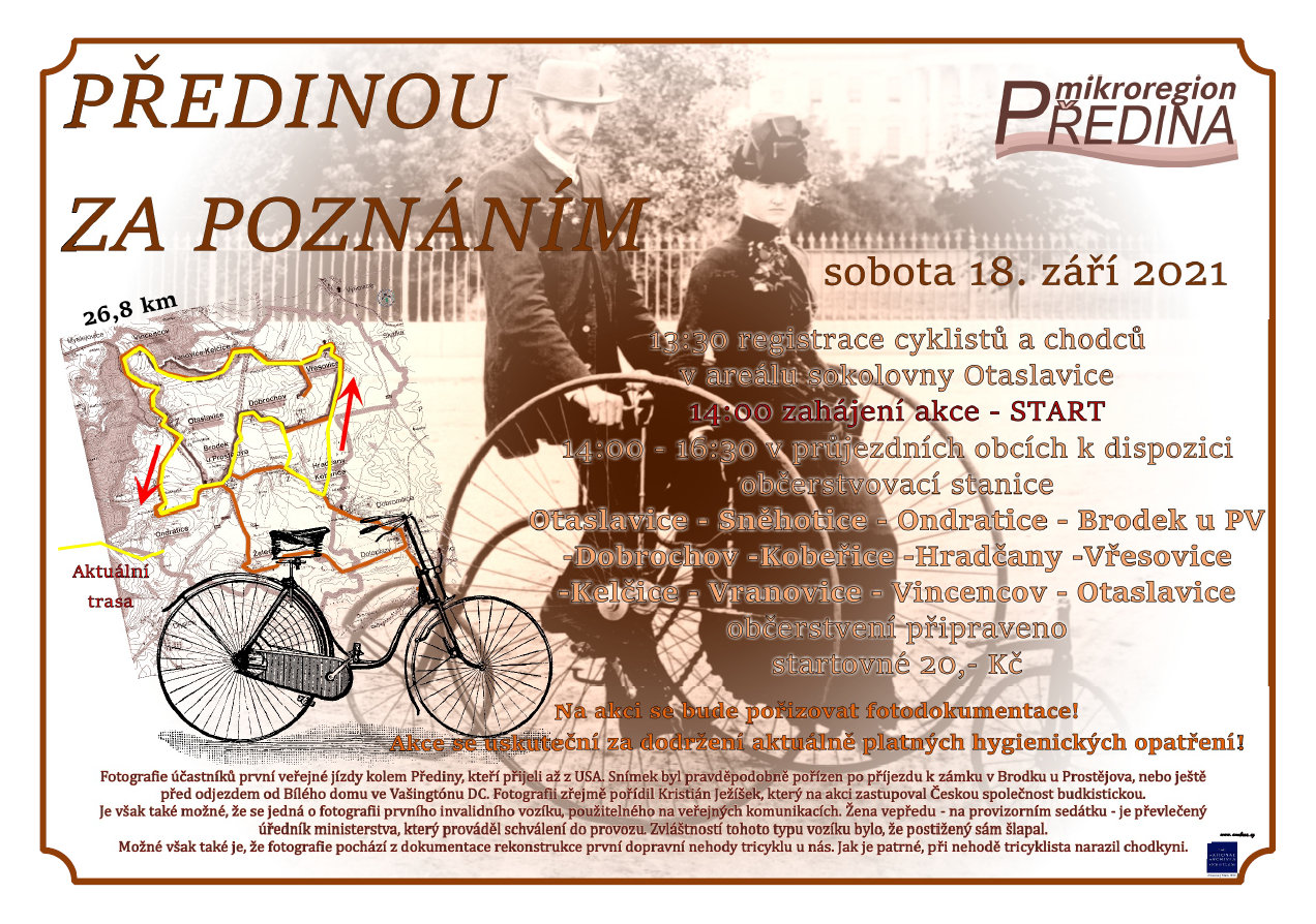 Oblíbený cyklovýlet "Předinou za poznáním" se uskuteční v sobotu 18.září 2021.