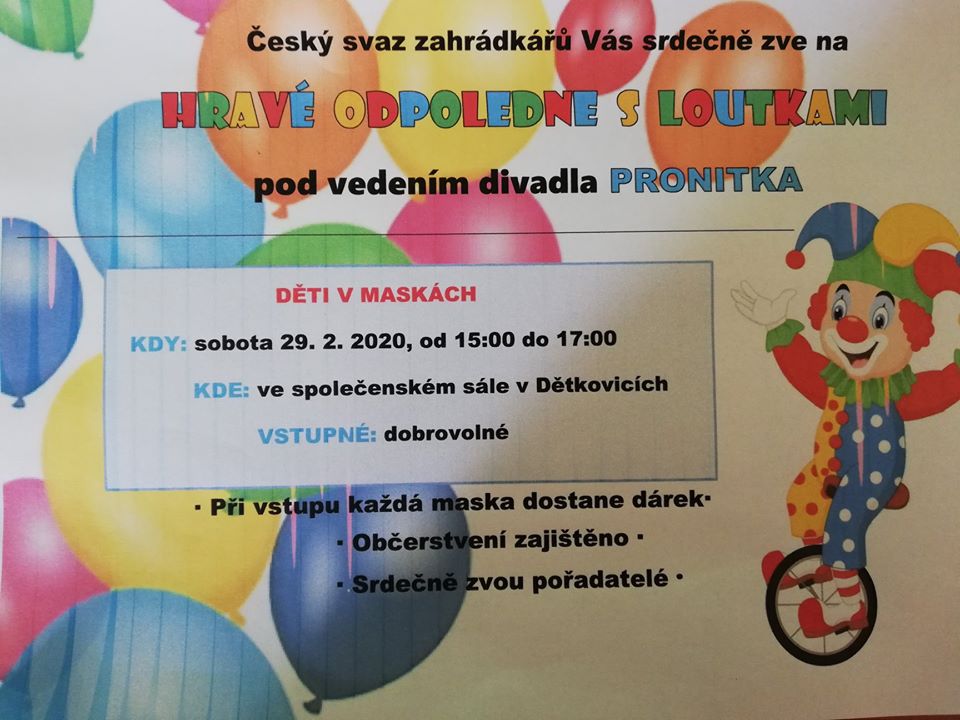 Zahrádkáři z Dětkovic Vás srdečně zvou na Hravé odpoledne s loutkami.