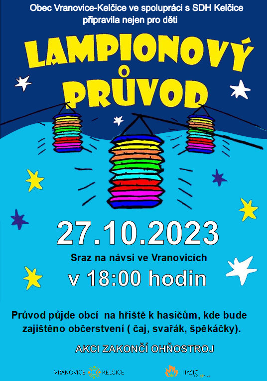 Lampionový průvod se uskuteční v pátek 27.10. 2023. Sraz účastníků průvodu je v 18:00 hodin na návsi ve Vranovicích.