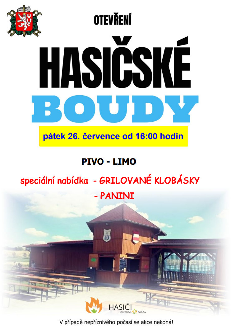 Otevření Hasičské boudy se koná v pátek 26.července od 16:00 hodin na hřišti v Kelčicích.