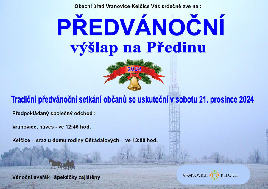 Tradiční předvánoční setkání občanů se uskuteční v sobotu 21. prosince 2024.