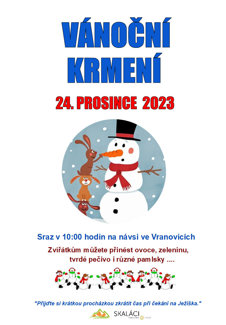 Společné krmení zvířátek se koná v neděli 24. prosince. Sraz je v 10:00 hodin na návsi ve Vranovicích.