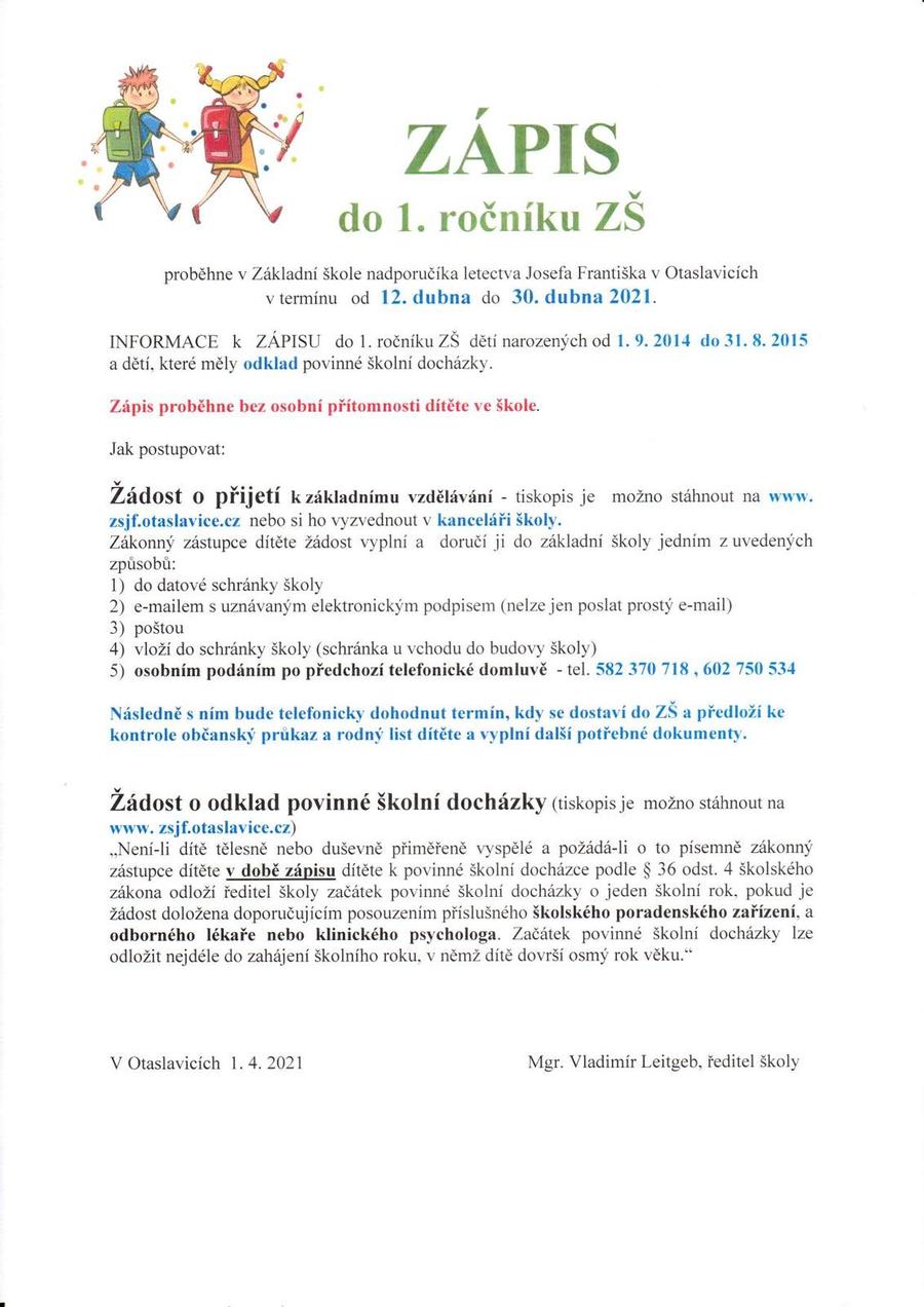 O obci > Aktuality > Zápis do 1. ročníku ZŠ