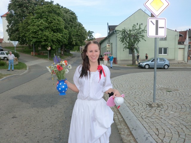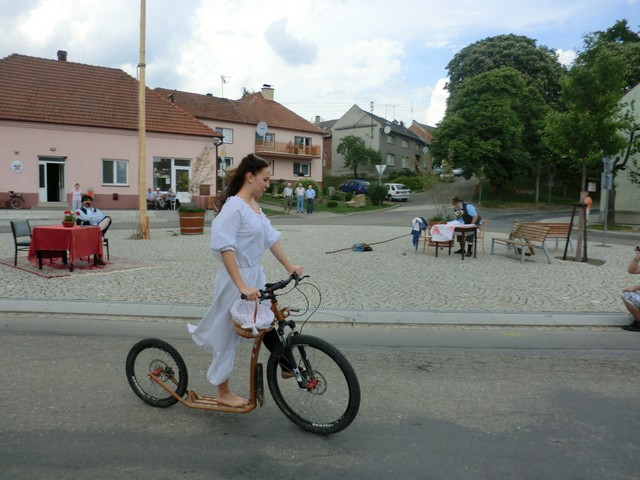 Vzpomínáte na Zdeničku z pohádky Jana Wericha Královna Koloběžka První ? Tak právě tuto Zdeničku jste mohli vidět v podání Petry Vláčilové tuto sobotu na návsi ve Vranovicích, kde probíhalo již tradiční Kácení máje s pohádkou. Do pohádky se zapojily i děti, které si nezapomněly přinést koloběžku.