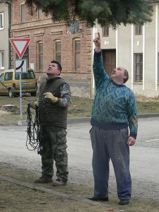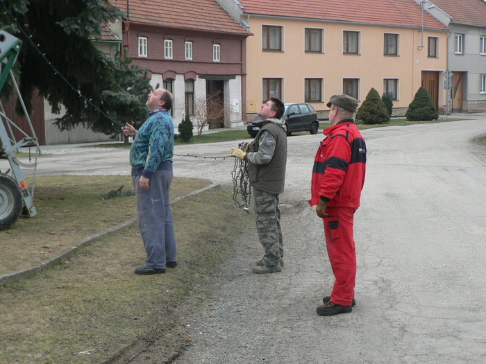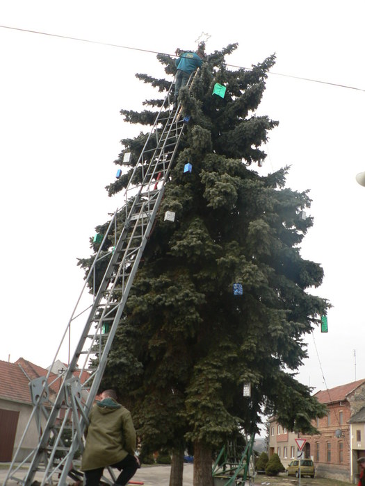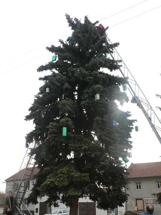 Odstrájení stromečku se děje většinou tehdy,když alespoň co nejvíce mrzne a když se najde pár "dobrovolníků",co si udělají "hezké dopoledne" "u stromečku"...když na ty vánoce pod ním toho moc neměli.A pak to vypadá,že "kradou" ze stromku balíčky dárků a osvětlení...Tož zase napřesrok při nějakém tom mrazu...kamarádi...