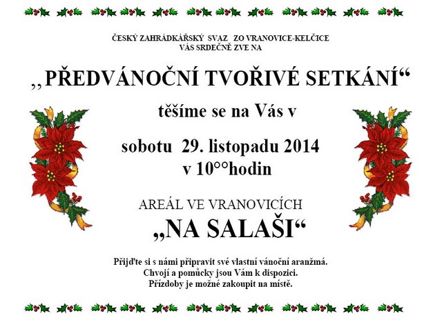 připravil opravdu pestrý program. Čeká nás adventní dílna , zdobení