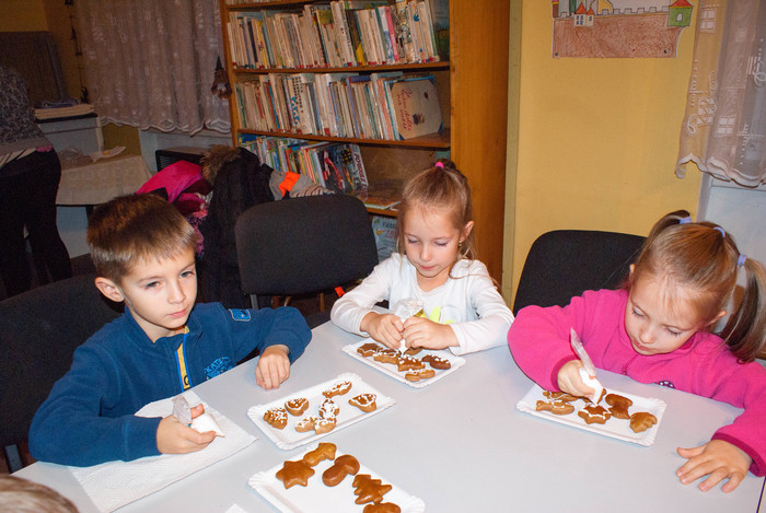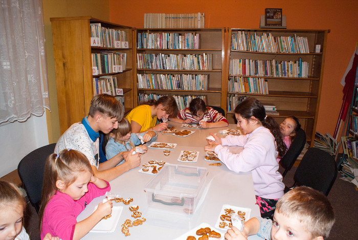 Děti, které navštěvují knihovnu si v pátek mohly pod zkušeným vedením paní Marie Vojáčkové vyzkoušet tradiční techniku zdobení vánočních perníčků.